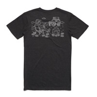 Gone Campin' t-shirt with Outdoors CBR 4wd and camping logo on the front and bushman print on the back.