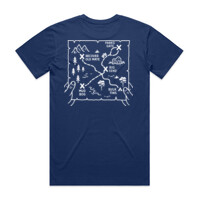 The Map t-shirt with Outdoors CBR 4wd and camping logo on the front and Map print on the back.